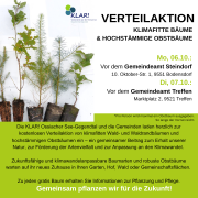 Die KLAR! Ossiacher See Gegendtal und die beteiligten Gemeinden laden herzlich zu einer kostenlosen Verteilaktion von klimafitten Waldbäumen und hochstämmigen Obstbäumen ein.