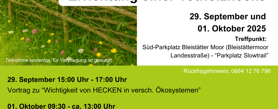 Auftaktveranstaltung am 29. September: Wichtigkeit von Hecken in verschiedenen Ökosystemen: Treffpunkt Südparkplatz Bleistätter Moor!